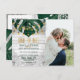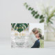 Elegant, rustic, and country tropical beach Swiss Cheese Monstera leaves on rustic white wood and lace with faux printed gold foil typography summer Save-the-Date wedding Postcards. This classic and sophisticated design is perfect for the trendy and stylish marrying couple. Personalise with your own message on the front as well as a customised monogram initial on the back. All photo print design.