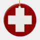 The Swiss flag on a Christmas ornament, text to alter if wishing