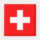 This design features the flag of Switzerland (officially the Swiss Confederation), which is a landlocked country in the middle of Europe. It is a federal republic, divided into 26 cantons; its capital city is Bern, while its largest city is Zurich. The country borders Germany to the north, Austria and Lichtenstein to the east, Italy to the south and France to the west. While most of the landmass is made up of the Alps, most of Swiss population lives on the plateau, where most major cities and economic centres are located, such as Zürich, Geneva and Basel. Switzerland has four official languages: German, French, Italian and Romansh, a less commonly spoken Romance language that is native to the country. The emblem of the Red Cross is the Swiss flag with switched colours.