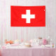 This design features the flag of Switzerland (officially the Swiss Confederation), which is a landlocked country in the middle of Europe. It is a federal republic, divided into 26 cantons; its capital city is Bern, while its largest city is Zurich. The country borders Germany to the north, Austria and Lichtenstein to the east, Italy to the south and France to the west. While most of the landmass is made up of the Alps, most of Swiss population lives on the plateau, where most major cities and economic centres are located, such as Zürich, Geneva and Basel. Switzerland has four official languages: German, French, Italian and Romansh, a less commonly spoken Romance language that is native to the country. The emblem of the Red Cross is the Swiss flag with switched colours.