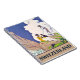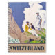 Switzerland, spiral notebook. People enjoy the view on the mountains during the summer season, with blue sky behind. Vintage travel poster on notebook cover