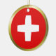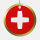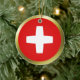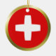 Both sides of this ornament feature the flag of Switzerland morphed into a circle with a golden rim. Simple Swiss decoration for your home.