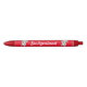 A fun red pen (trim and ink) with two cute little white and black cows and the word "Switzerland" written neatly in white letters .
