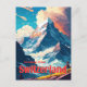 Switzerland Retro Matterhorn Travel Postcard features a sunset over the Matterhorn mountain in Zurmatt, Switzerland with red typography. ©2024 Victorious2 www.zazzle.com/store/Victorious2