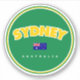 Badge of Sydney design with flag of Australia, green colour, rounded shape, Australia