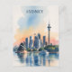 Sydney Australia Skyline watercolor Travel Postcard