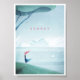 Vintage style travel poster of Sydney. Illustration of a girl in a park in front of the Sydeny Opera House. Text reads Visit Sydney. Original hand drawn and digitally rendered illustration by Henry Rivers for Travel Poster Co.