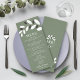 This budget wedding menu card has a stunning and sophisticated look inspired by the beautiful Mediterranean region. It has a lovely green colour and a graceful illustration of an olive branch at the top, which represents peace and harmony - important qualities for any marriage. The elegant design adds to the dining experience, creating a striking element that matches the overall atmosphere. The cover has been designed using some assets from Freepik.com