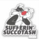 LOONEY TUNES™ | SYLVESTER™ sulks with his chin resting in one hand, the other balled over the words "Sufferin' Succotash".