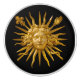 Symbol of Louis XIV the Sun King (Roi Soleil) on the golden gate of Chateau de Versailles with black background