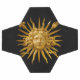 Symbol of Louis XIV the Sun King (Roi Soleil) on the golden gate of Chateau de Versailles with black background