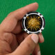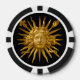 Symbol of Louis XIV the Sun King (Roi Soleil) on the golden gate of Chateau de Versailles with black background
