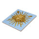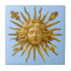 Symbol of Louis XIV the Sun King (Roi Soleil) on the golden gate of Chateau de Versailles with Light Blue background