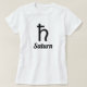 A white t-shirt with the symbol of Saturn with text text Saturn under it on it. You can customise this t-shirt to change the colour of the font, change the font size and type and more to turn it into you own unique t-shirt.