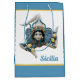 Celebrate the heritage of Sicily with this striking Trinacria gift bag, featuring the island’s iconic three-legged symbol representing the “three points” of Sicily. Inspired by traditional Sicilian ceramics, the design is beautifully rendered in cool shades of grey, white, and blue with bright yellow accents. A blue border with a fine yellow pinstripe frames the artwork for a polished look. The word “Sicilia” appears on the bag, but you can also customize it to say “Sicily” for an English variation. Perfect for Sicilian-themed parties, cultural events, or anyone who loves Mediterranean décor and heritage-inspired gifts.