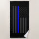 Symbolic Thin Blue Line US Flag graphic on a Beach Towel