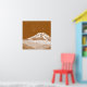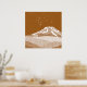 An illustration of Syme hut on Fathoms Peak, with Mt Taranaki in the background. This design is drawn in a brown monochrome and has the Matariki stars above it in the sky. A design for anyone who loves hiking and tramping in New Zealand.