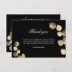 A simple and elegant sympathy thank you card with photo. A classic black background, and golden watercolored ecalyptus sprigs, foliage. Personalise and add your thank you note. White text.