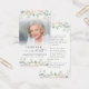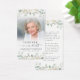 Keep the memory of a loved one close with this custom personalized prayer card featuring one cherished photo, the sentiment FOREVER IN OUR HEARTS, name and dates and an editable heartfelt remembrance message you can change to a meaningful poem, quote or bible verse and soft watercolor white flowers and greenery. It makes a meaningful keepsake to share at a funeral, memorial service, visitation, wake or Celebration of Life and offers comfort and a lasting tribute for family and friends. Its small and portable size of 3.5x2" (wallet-sized) makes it convenient for loved ones to carry it with them as a reminder of your loved one’s life and spirit. Personalization makes each card unique.
