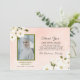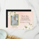 This Romantic Memorial design Thank You Card features a watercolor pale pink and white flowers and greenery leaves on light peach pink background with green and black elegant text. Easy to add photo in greenery frame.The reverse side of the card is black coloured. Give your loved during or send them after the funeral.