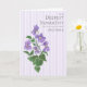 A very pretty greeting card to express your sympathy with someone on the death of their mother. Wood or wild violets have many associations but William Shakespeare associated English violets with death and mourning, although they are often the first sign of spring's arrival in woodland so they also convey a message of hope and renewal. This clump of violets was painted by hand in watercolour by Judy Adamson and the background is striped with a very pale violet colour. The front cover greeting is, 'With Deepest Sympathy on the loss of your Mother' and the inside message is just a suggestion which you can easily personalise.