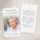 Elegant memorial prayer card featuring a cherished photo of your loved one and the sentiment Forever in Our Hearts in calligraphy script typography on the front and a suggested saying or your custom text, a meaningful poem, quote or bible verse on the back in simple black and white. These cards offer support and comfort for family and friends as a keepsake memento in remembrance.