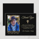 Elegant religious sympathy & memorial IN LOVING MEMORY thank you photo card. Easy to add photo / picture of your loved one. Faux gold frame and cross (Catholic, Christian) on a black background. Give them during or send them after the funeral. Acknowledgement of condolences. Makes great keepsake, memory of a loved one. Add your thank you message. See others like 'in loving memory'