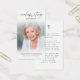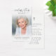 Celebrate the memory of your loved one with this custom personalized prayer card featuring one cherished photo, the title CELEBRATING THE LIFE OF, name and dates on the front and an editable prayer you can change to a heartfelt remembrance message, meaningful poem or saying accented with a simple cross on the back. With its simple yet elegant classic black and white design and modern handwritten script typography, it makes a meaningful keepsake to share at a Celebration of Life, funeral, memorial service, visitation or wake and offers comfort and a lasting photo tribute for family and friends. Its small and portable size of 3.5x2" (wallet-sized) makes it convenient for loved ones to carry it with them as a reminder of your loved one’s life and spirit. Personalization makes each card unique.