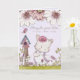 Sympathy Loss of Girl Cat is hand crafted with illustrations and finished with watercolor paints. Sweet Cat Clothed in a lavender print dress and apron. She wears a flower on her head and is talking to a friendly bird. Symbolising the afterlife is a happy place. Detailed art and exquisite detail with a nice touch of a bird house. Your thoughtfulness will be appreciated and remembered forever.