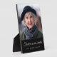 This simple and classy memorial bereavement plaque features room for your favourite photo of your loved one, with modern soft grey text on black. The perfect way to offer sympathy and remembrance for the loss of a loved one.