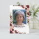 Funeral thank you note on a flat invitation card is a simple way to thank those that showed you comfort during your time of bereavement. This card features a white background that can be changed to any colour, blush pink and burgundy flowers, a photo of your loved one, and a personalised thank you message.