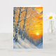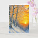 A vibrant sunset illuminates a snowy hillside in watercolor, where a line of birch trees stands proudly against the backdrop as the sky transforms from a brilliant orange to soothing shades of blue, creating a breathtaking scene.
