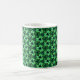 A vibrant pattern of green five-pointed stars that look like flowers is arranged in a seamless, symmetrical layout, creating a visually captivating geometric design. The repetitive elements form a kaleidoscope effect that draws the eye across the image.