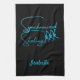 Turquoise Blue personalised calligraphy ice skate towel for synchronised skaters - a useful synchronised skating gift to dry out blades after practice.