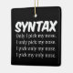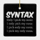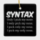 A funny typography illustration which has the word syntax and then some sentences explaining how important word placement is when you are writing. The funny design is about picking your nose. The word only is moved to different positions in the sentence to give it different meanings. I only pick my nose. This is a design that would be suitable for anyone learning or teaching the English language.