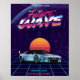 Synthwave art inspired by the 1986 driving arcade game Out Run.