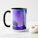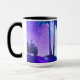 Enjoy your favourite drink with this artistic mug featuring a dreamy synthwave design. The scene blends palm trees, a glowing sky, and a futuristic motorcycle silhouette in vibrant purple and blue tones. Perfect for fans of digital art, retro aesthetics, and unique home décor.