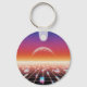 A vibrant, retro-futuristic landscape inspired by 1980s synthwave aesthetics. The design features a neon wireframe grid stretching towards the horizon, where a large, textured planet rises against a stunning gradient sky of orange, pink, and purple. The scene evokes a sense of nostalgia for a futuristic vision of the past.