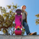 Ride the streets in retro-futuristic style with this vaporwave skateboard, featuring a sunset electric orange, set against a dark starry sky. Silhouetted palm trees stand tall, while a glowing retro grid stretches into the distance, capturing the essence of 80s synthwave nostalgia. Subtle glitch effects, scan lines, and a dreamy glow bring this design to life, making it perfect for skaters who love bold aesthetics and futuristic vibes. Whether you're shredding the pavement or displaying it as art, this eye-catching skateboard is a must-have for any vaporwave enthusiast.