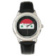 Watch with flag of the Syrian Arab Republic, a horizontal tricolor triband of red, white and black, with two green stars in the centre
