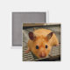 A close up photograph of a cute Syrian hamster printed on a square fridge magnet.