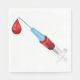 A syringe of blood with a red drop of blood at the end. This design looks really effective on these Paper Napkins
