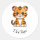 Adorable sticker with a cute cartoon baby tiger and the words "T for Tiger". Terrific letter learning tool for early learnings. Fun for sticker collectors and animal enthusiasts.