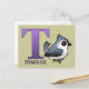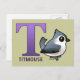A cute Birdorable Tufted Titmouse perches by a purple letter T. You can totally customise this gift! Move the design around, change the background colour or style, add your own text or images -- make it your own!