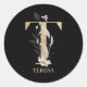 Letter T monogram floral. Letter T in golden brown texture accented with green watercolor compound leaves, flower blossoms and melted gold splashes. Personalised with name in matching font.