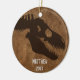 Brown T-rex dinosaur bones on a grunge background makes for a super cool keepsake ornament for any aspiring paleontologist. Design by Night Owl's Menagerie, 2014.