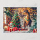 T-Rex Celebrating Christmas by Tree Holiday Postcard