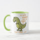 T-rex was happy until the song said he should clap his hands! Funny dinosaur drawing with text lettering, on t-shirts, hoodies, cards, gifts.