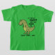 T-rex was happy until the song said he should clap his hands! Funny dinosaur drawing with text lettering, on t-shirts, hoodies, cards, gifts.