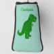 This t-rex design golf club head cover is an accessory that you slide over the head of a golf club for protection against knocks whilst sitting in your golf bag. Made out of polyester, cotton, and marine vinyl with a choice of different piping colours. You can customise this golf club head cover with any text. Should you require any help with customising then contact us through the message link on this page. Dinosaur design golf club head cover.